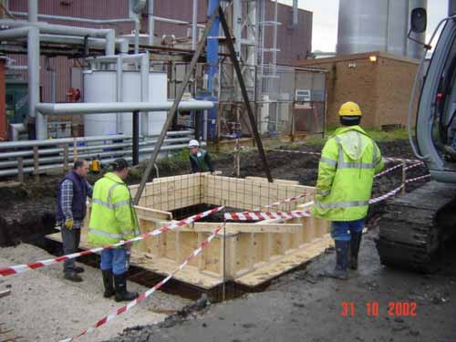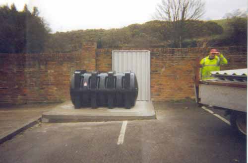 To accommodate a new oil storage tank a steel housing unit was