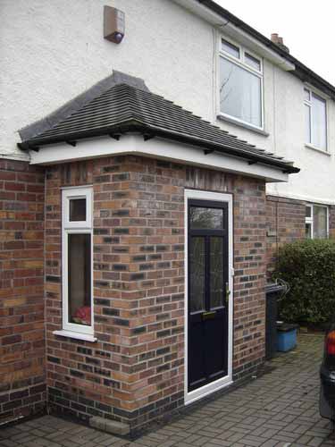 external wall of the porch and new window and door.