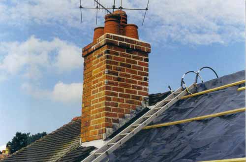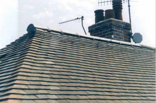 A typical tiled roof replacement with a re-pointed chimney (picture 1)